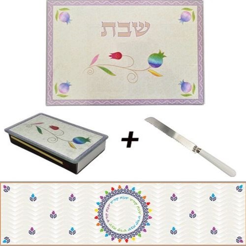 סט קרש חלה + סכין + ראנר + מחזיק גפרורים תואם דגם רימון אקוורל