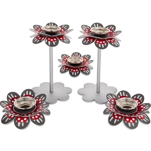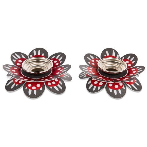 פמוטים לשבת דגם פרח גבוה אפור-אדום