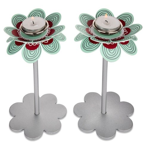 פמוטים לשבת דגם פרח גבוה טורקיז-אדום