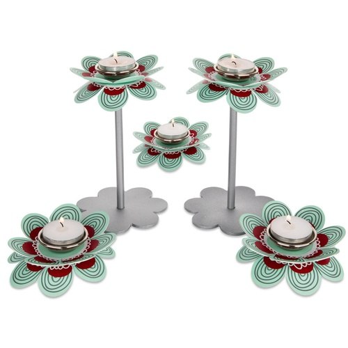 פמוטים לשבת בעיצוב פרח צבעוני גבוה בגווני טורקיז - אדום