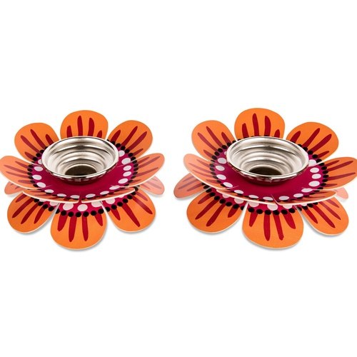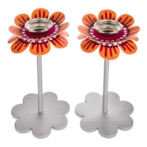 פמוטים לשבת בעיצוב פרח צבעוני גבוה בגווני כתום - ורוד